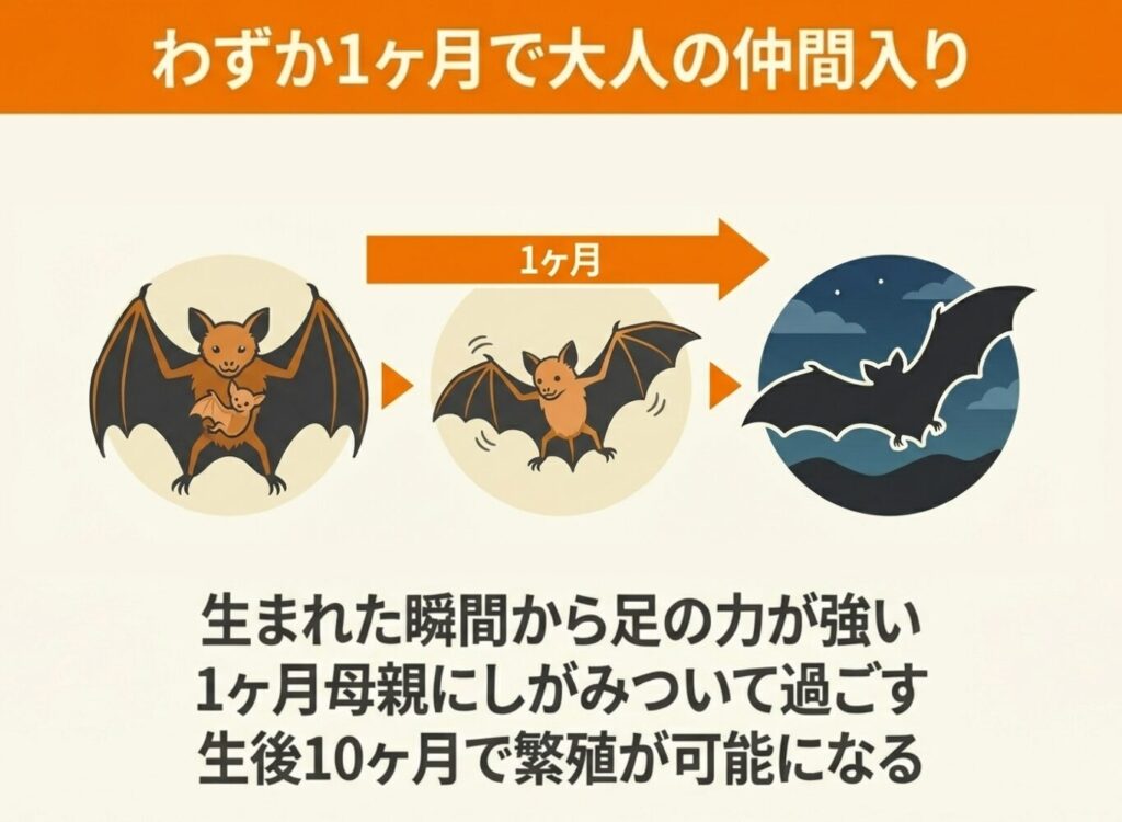 ここでは、コウモリがどのように生まれ、どのように育っていくのかを見ていきましょう。