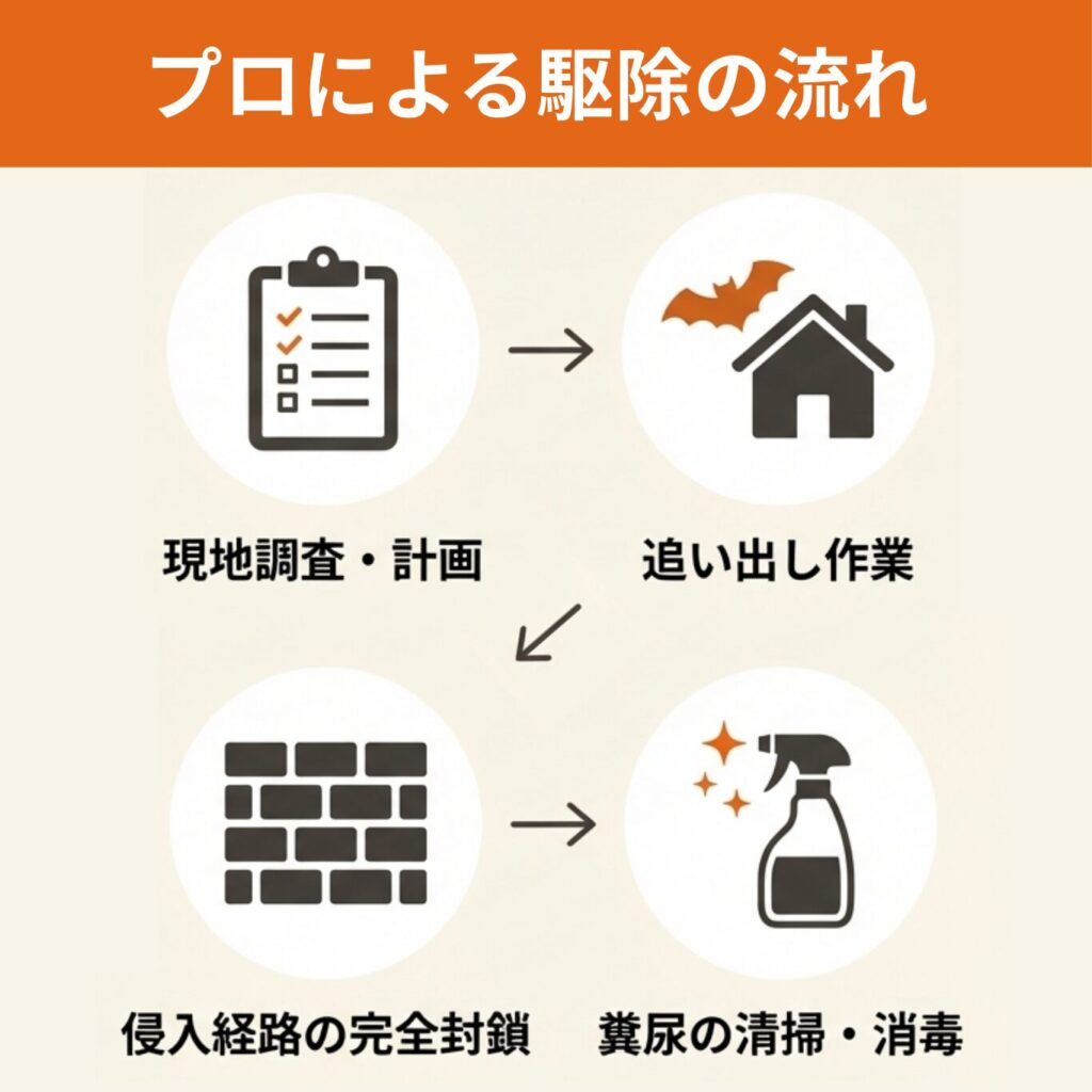 コウモリ対策の確実性と安全性を重視するなら、専門業者への依頼が最も効果的な選択です。