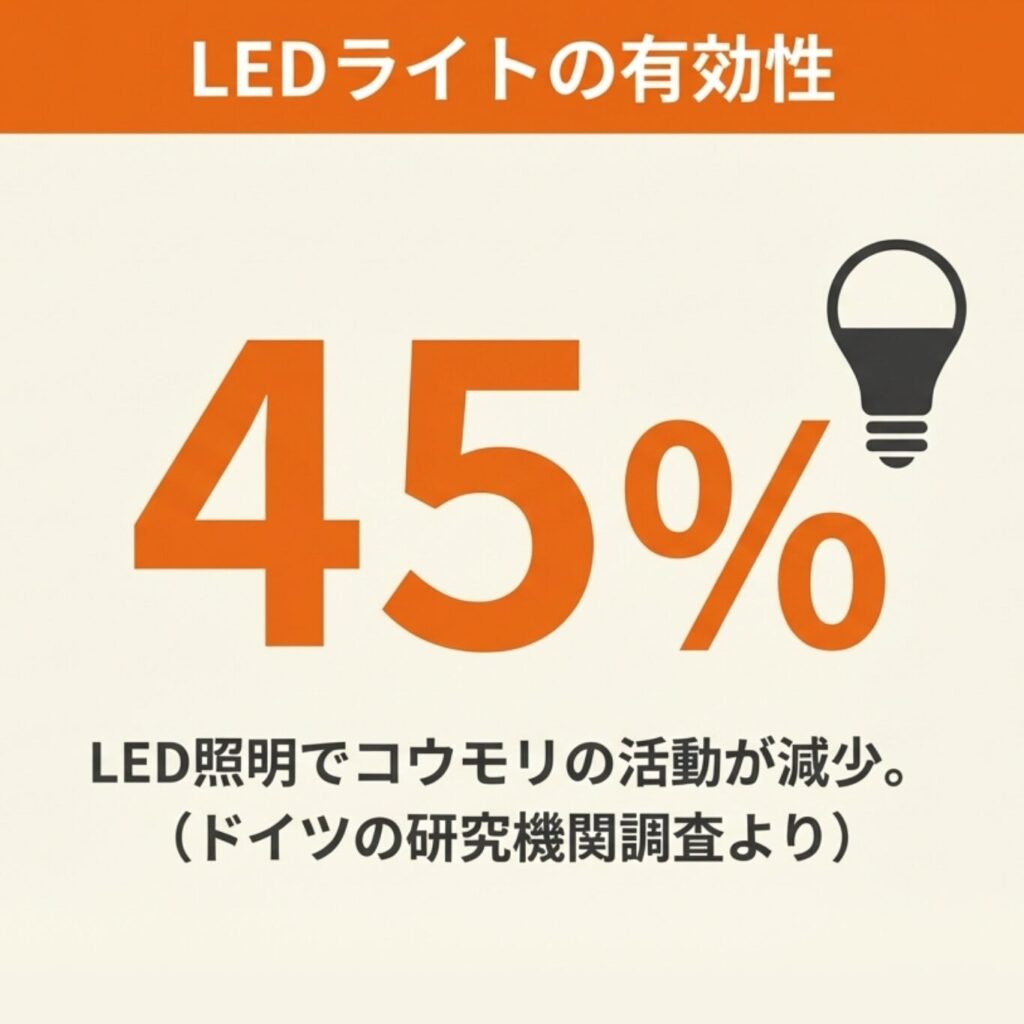 LEDライトには補助的な効果がありますが、単独での完全駆除は難しいでしょう。