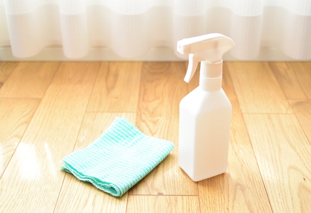 まず、清潔なスプレーボトルに無水エタノールを入れ、ハッカ油を加えてよく振り混ぜます。