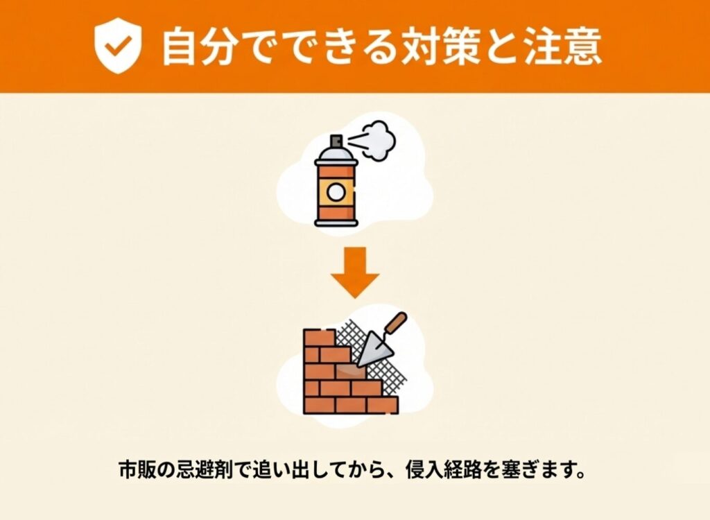 コウモリ被害を発見した場合、専門業者に依頼する前に自分で対策を試みることも可能です。