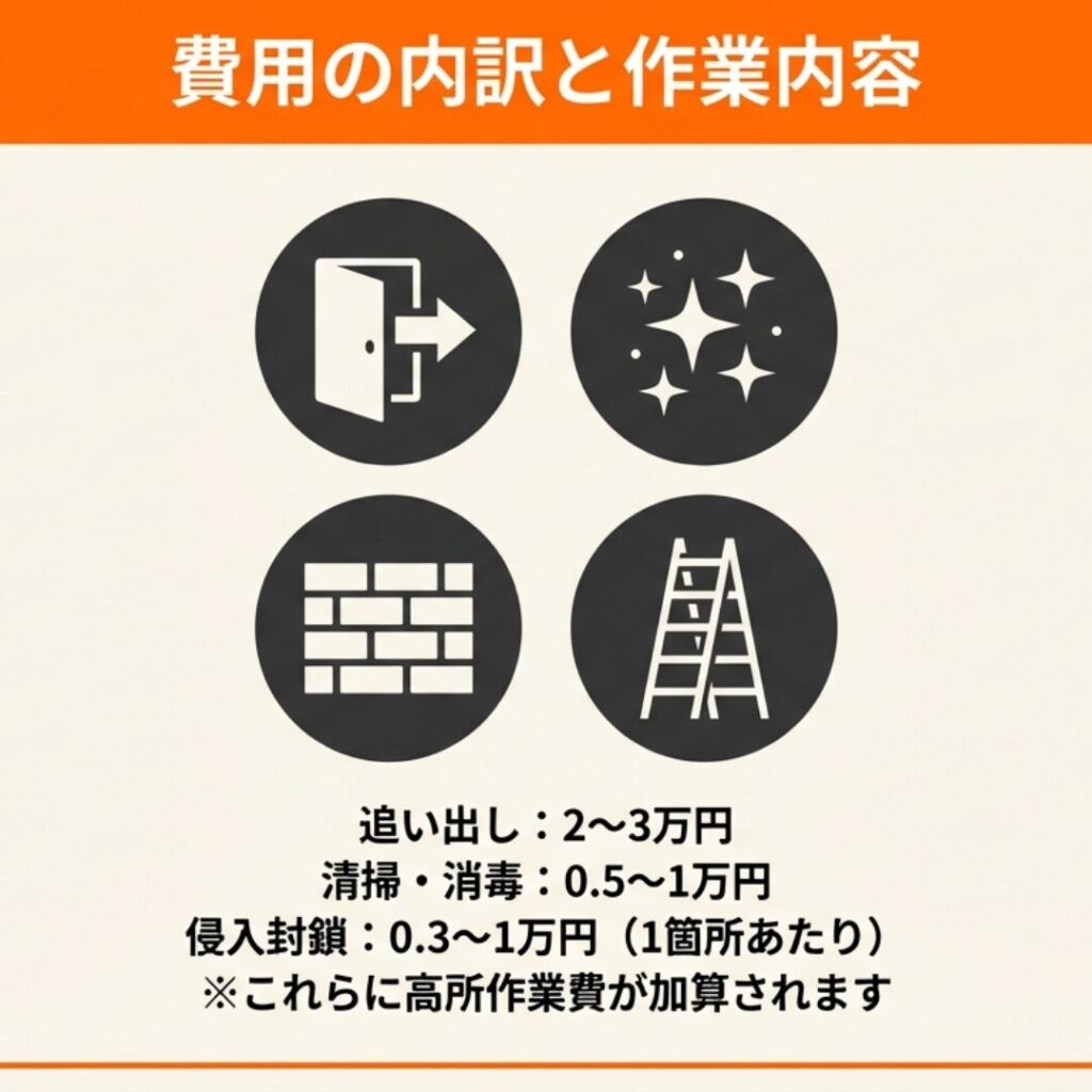 ただし、複数箇所に同時に住み着いている場合は、費用が上がる可能性もあります。