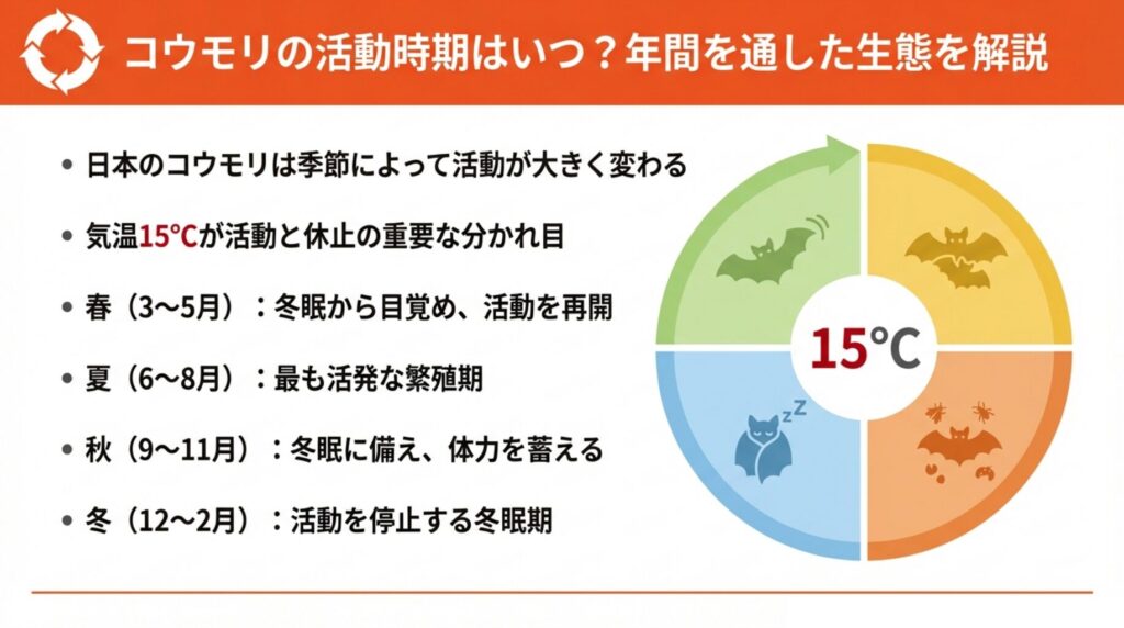 コウモリの冬眠について正しく理解すると、適切な対策時期を判断しやすくなります。