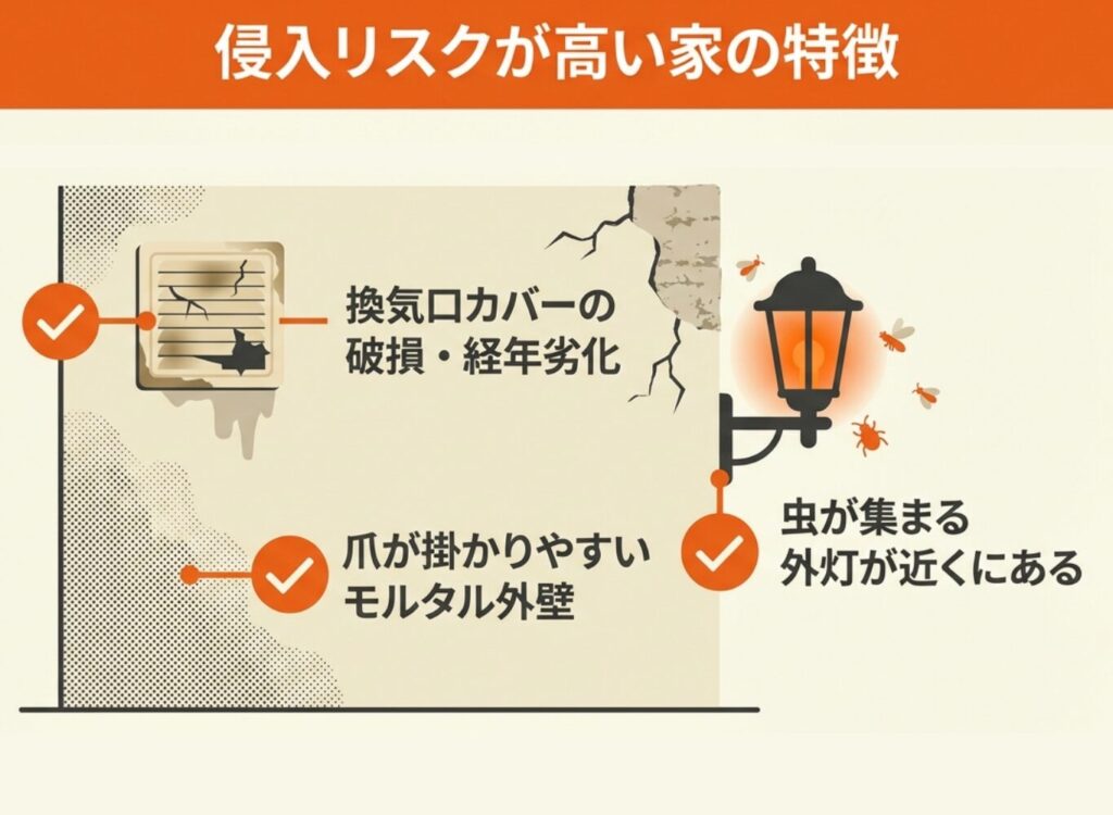 換気扇への侵入を許しやすい建物には、いくつかの共通点があります。