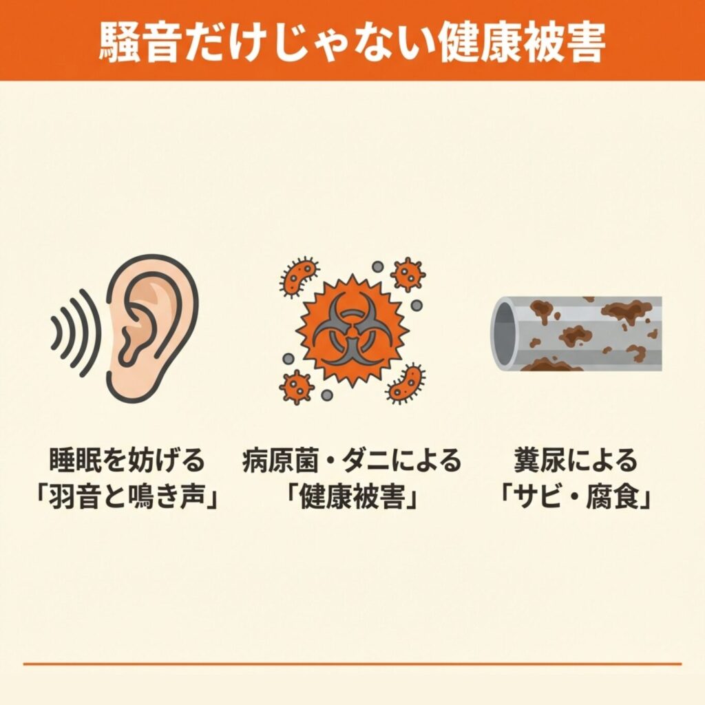 糞の蓄積や羽音による騒音、感染症リスクに不安を感じていませんか?