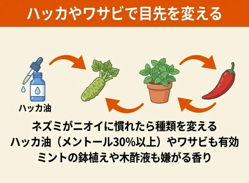 ネズミは学習能力が高い動物でもあるため、時間が経つとニオイに慣れてしまう可能性がある点には注意が必要です。