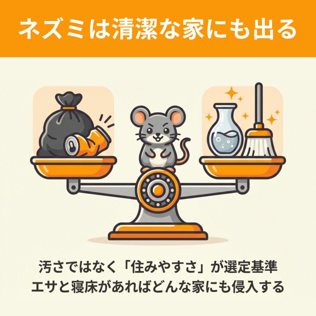 ネズミが住処を選ぶ基準は、単なる「汚さ」ではなく「住みやすさ」にあります。