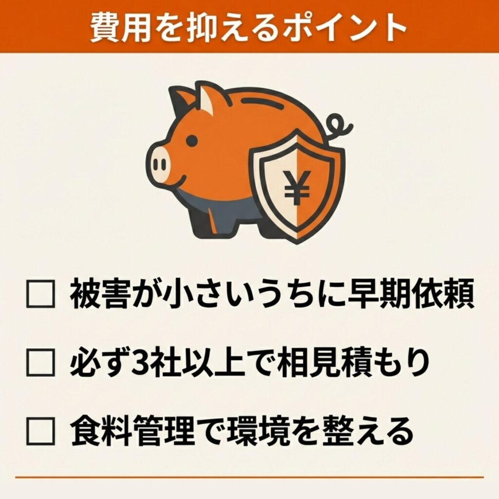 初期費用は高めになるかもしれませんが、長期的に見れば一度で確実に駆除する方が結果的に安く済みます。