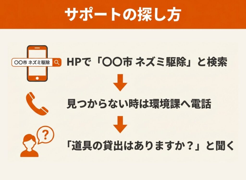 一部の自治体では、住民が自力でネズミ駆除を行えるよう、駆除道具の貸し出しや無料配布を実施しています。