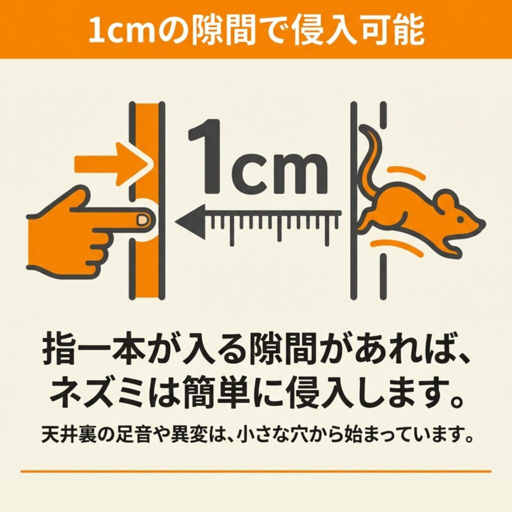 ネズミは約1cm程度の隙間があれば侵入できるといわれています。