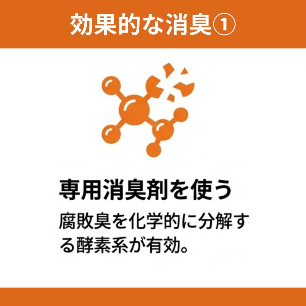 市販の消臭剤は軽い生活臭向けに作られており、強力な腐敗臭には対応していません。