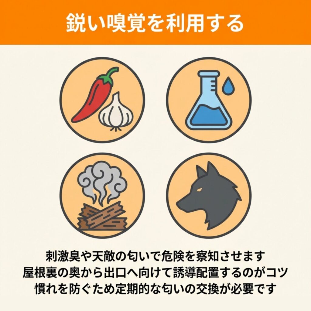 ハクビシンは嗅覚が非常に優れており、特定の匂いを極端に嫌がる性質があります。