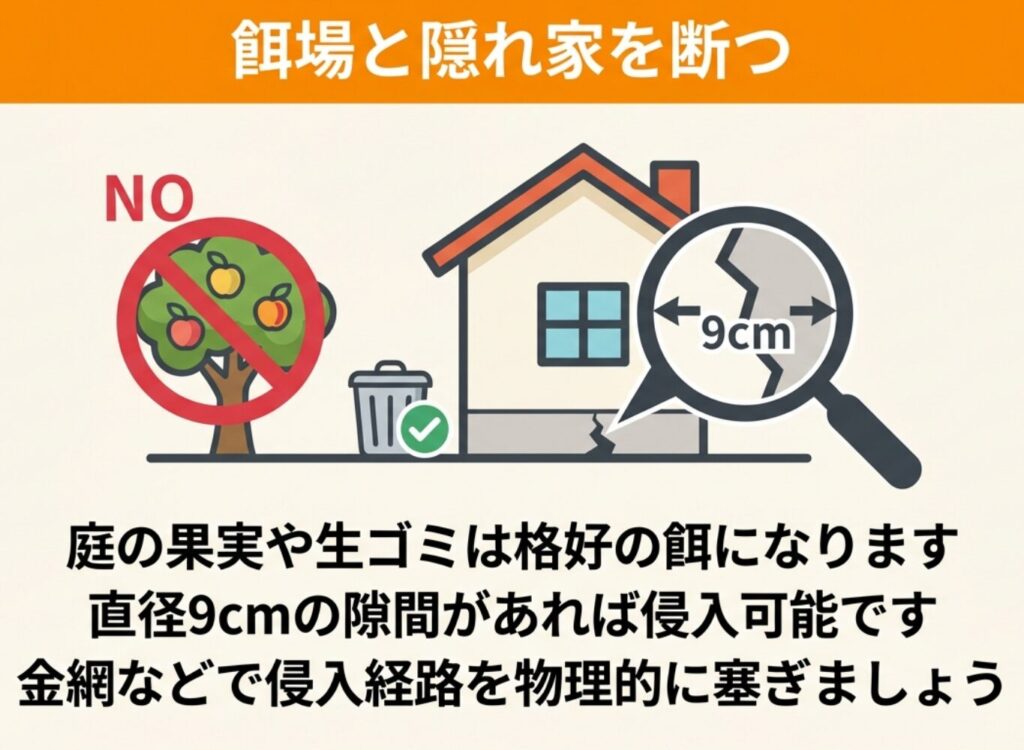 - 庭の果樹や生ゴミの管理は徹底されているか