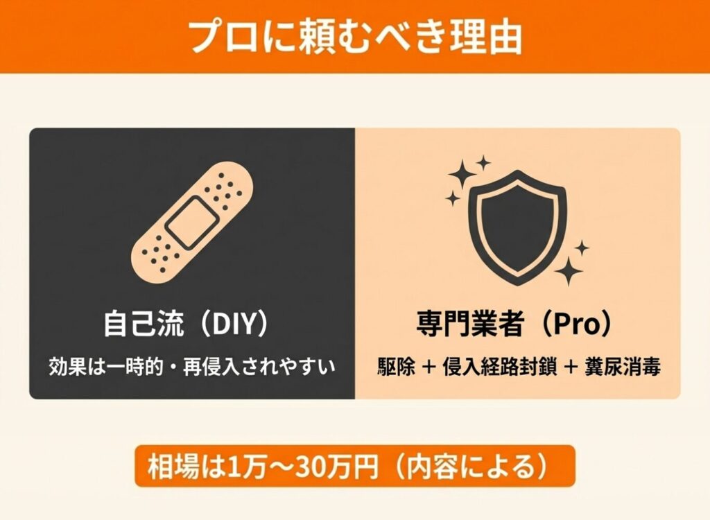 追い出しと侵入経路の完全封鎖約5万〜15万円