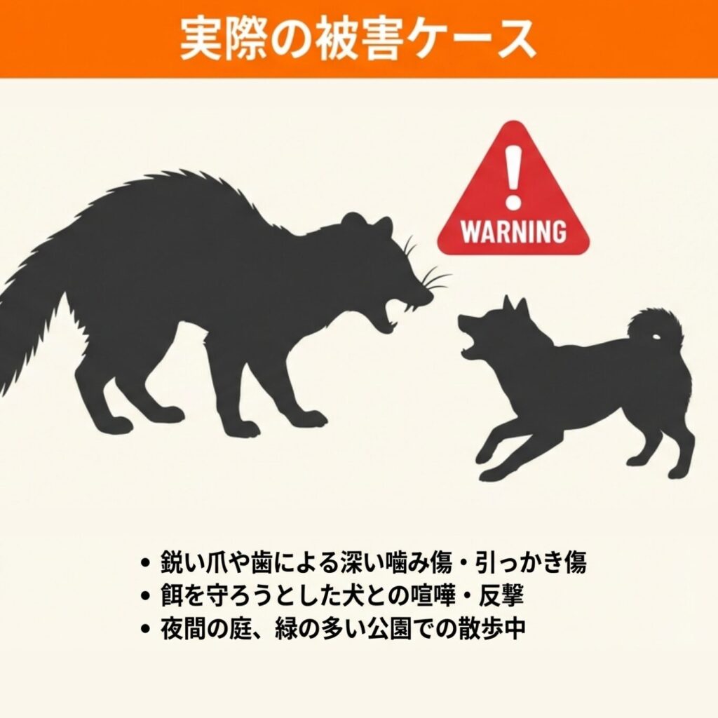 実際にハクビシンが犬を襲ったという被害報告は存在します。