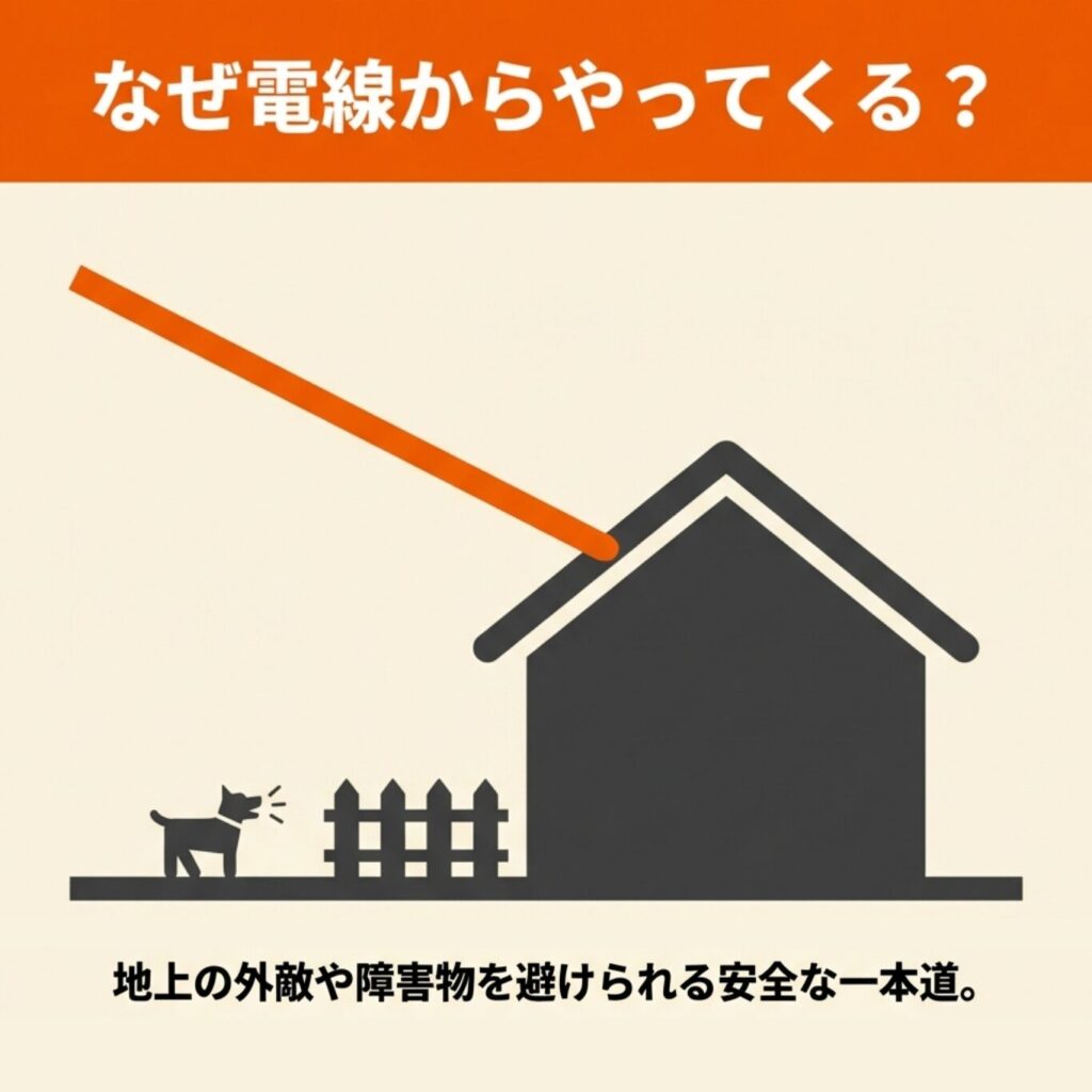 ここでは、ハクビシンがなぜ電線を好んで利用するのか、どのような種類のケーブルが危険なのか、そして屋根への到達パターンについて解説します。