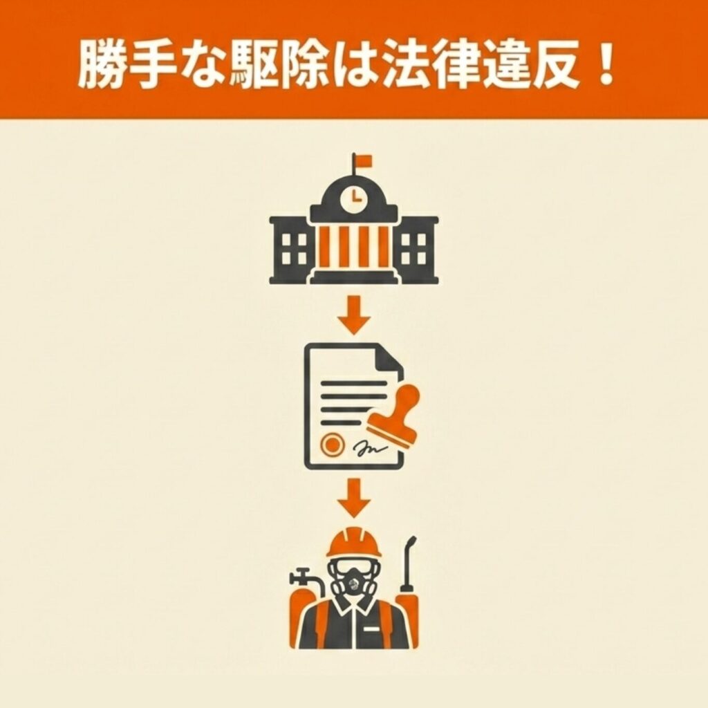 ここでは法的な規制の内容と、正規の手続きで駆除を行う方法について解説します。