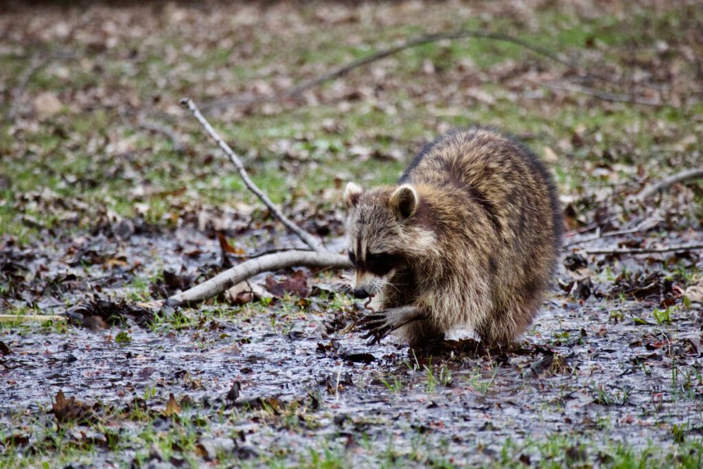 春のアライグマは、繁殖期に向けて体力をつけるため、タンパク質を多く摂ります。