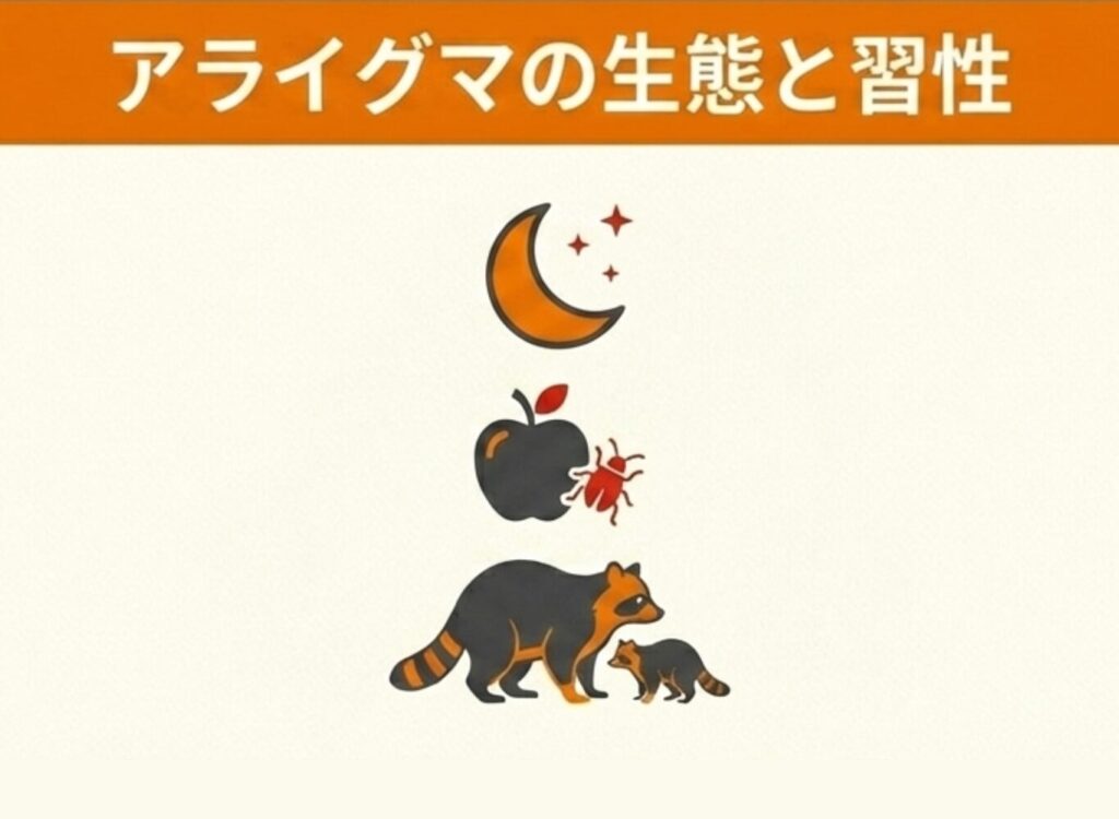 夜行性の行動パターン、何でも食べる雑食性、短期間で個体数が増える繁殖力など、生態を正しく理解することが被害予防の手がかりになります。
