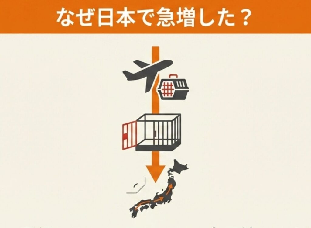 かつてペットとして輸入された個体が野生化し、生態系や農業、住環境に深刻な影響を与えるようになりました。