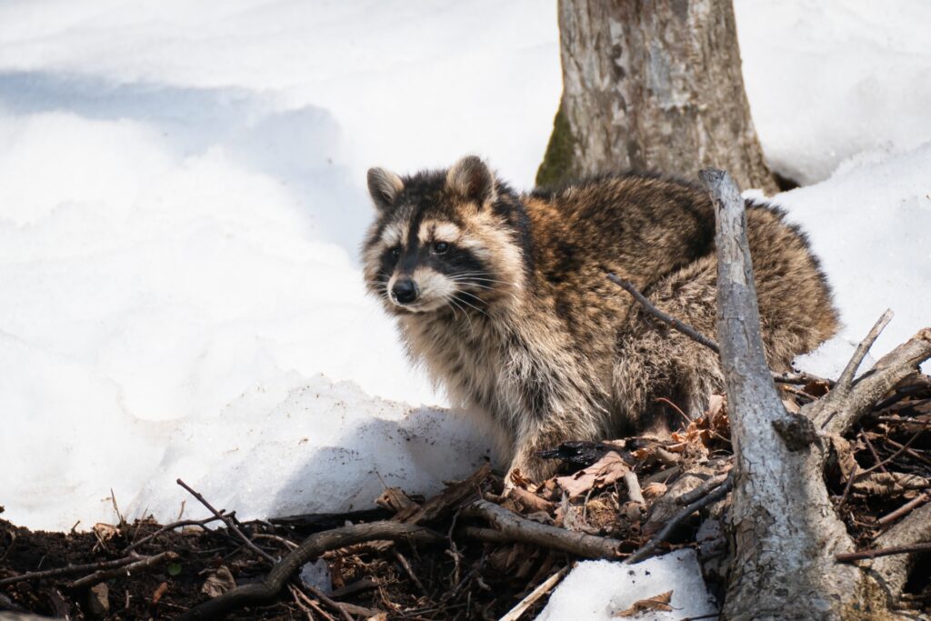 アライグマは本当の冬眠はせず、活動量を減らした半冬眠状態で寒い季節を過ごします。