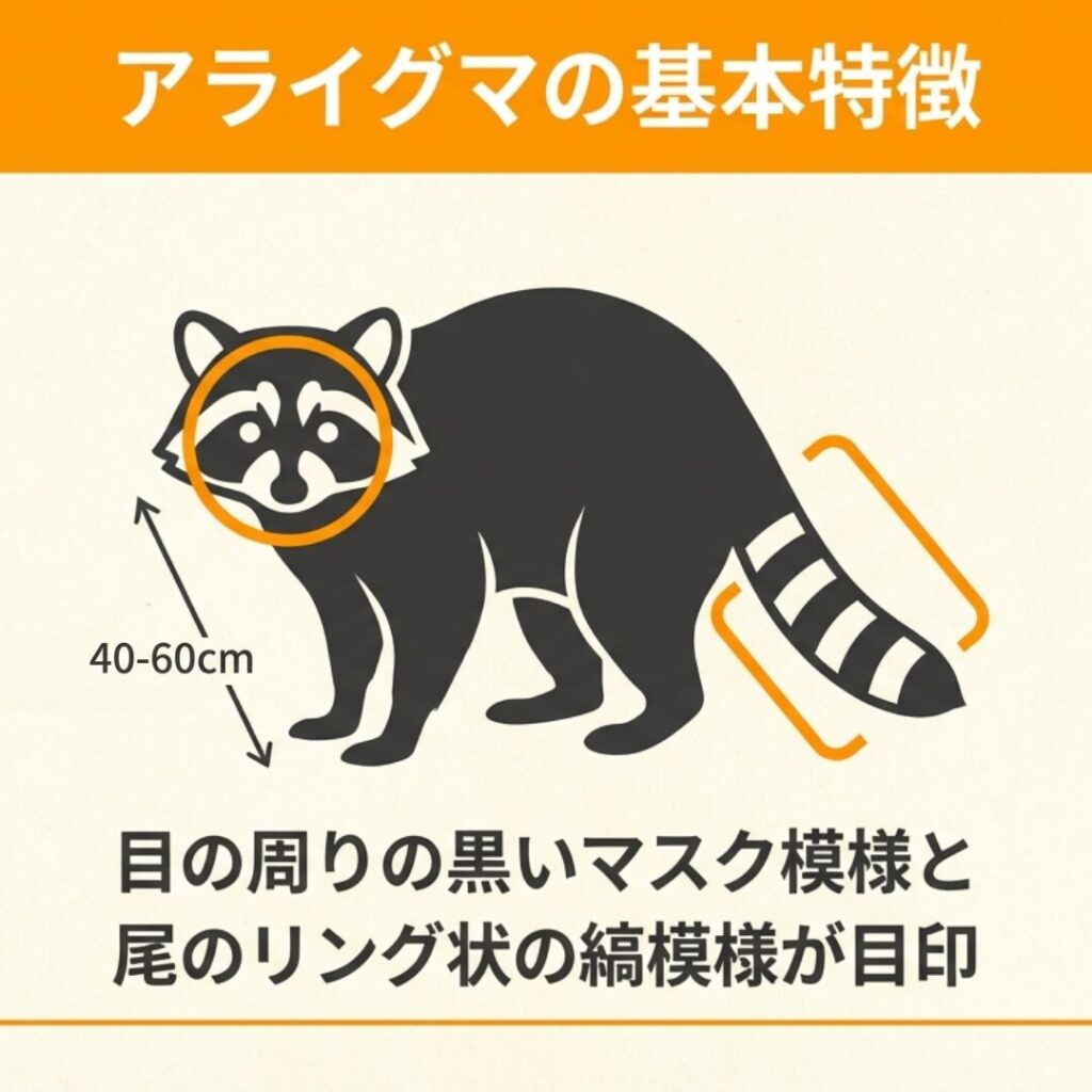 アライグマは目の周りに黒いマスク模様があることが最も大きな特徴です。