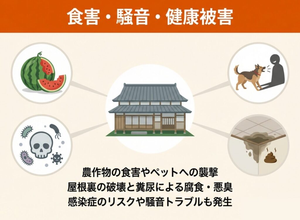 放っておくと食害や糞尿被害、家屋への侵入など深刻なトラブルに発展するため、早めの対策が欠かせません。