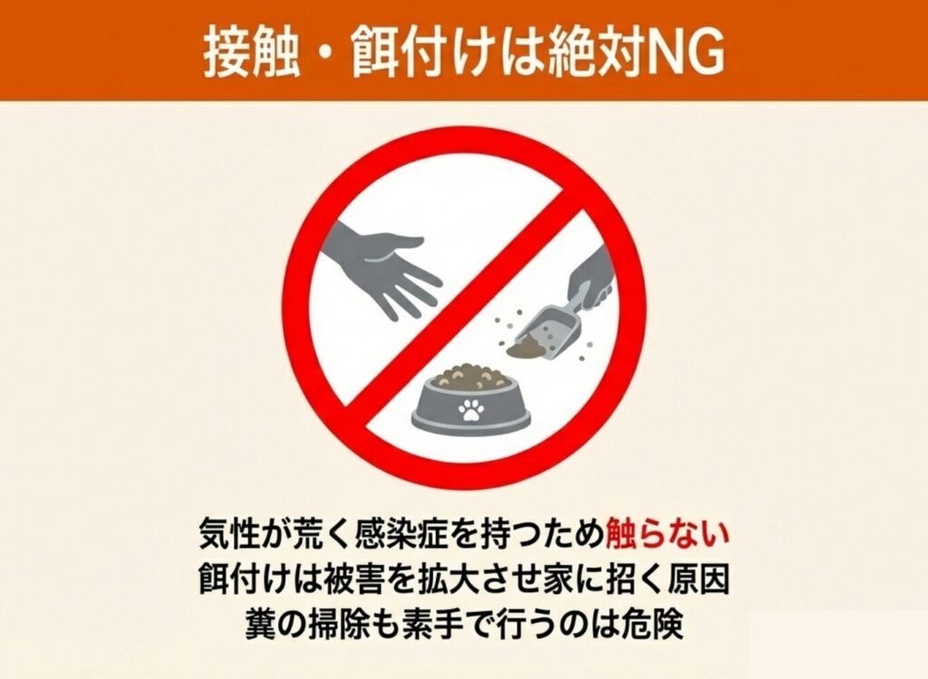 特に繁殖期は、安全に子育てできる場所を求めて住宅の周辺をうろつくケースが増えます。