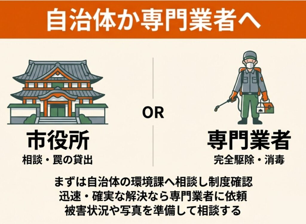 駆除が必要な場合は、必ず自治体に相談して正規の手続きを踏みましょう。