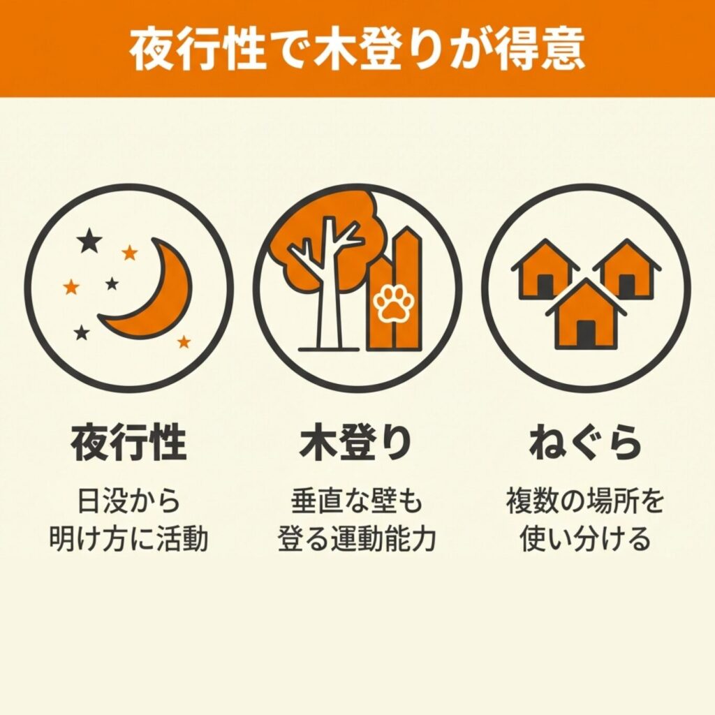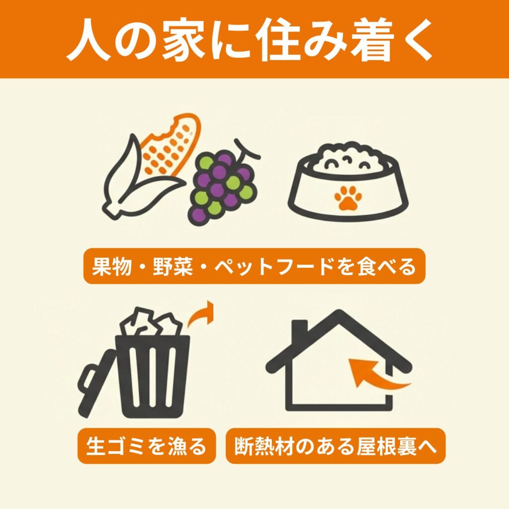 活動時間や住処の選び方、運動能力といった生態情報は、効果的な対策を立てる上で欠かせない知識です。