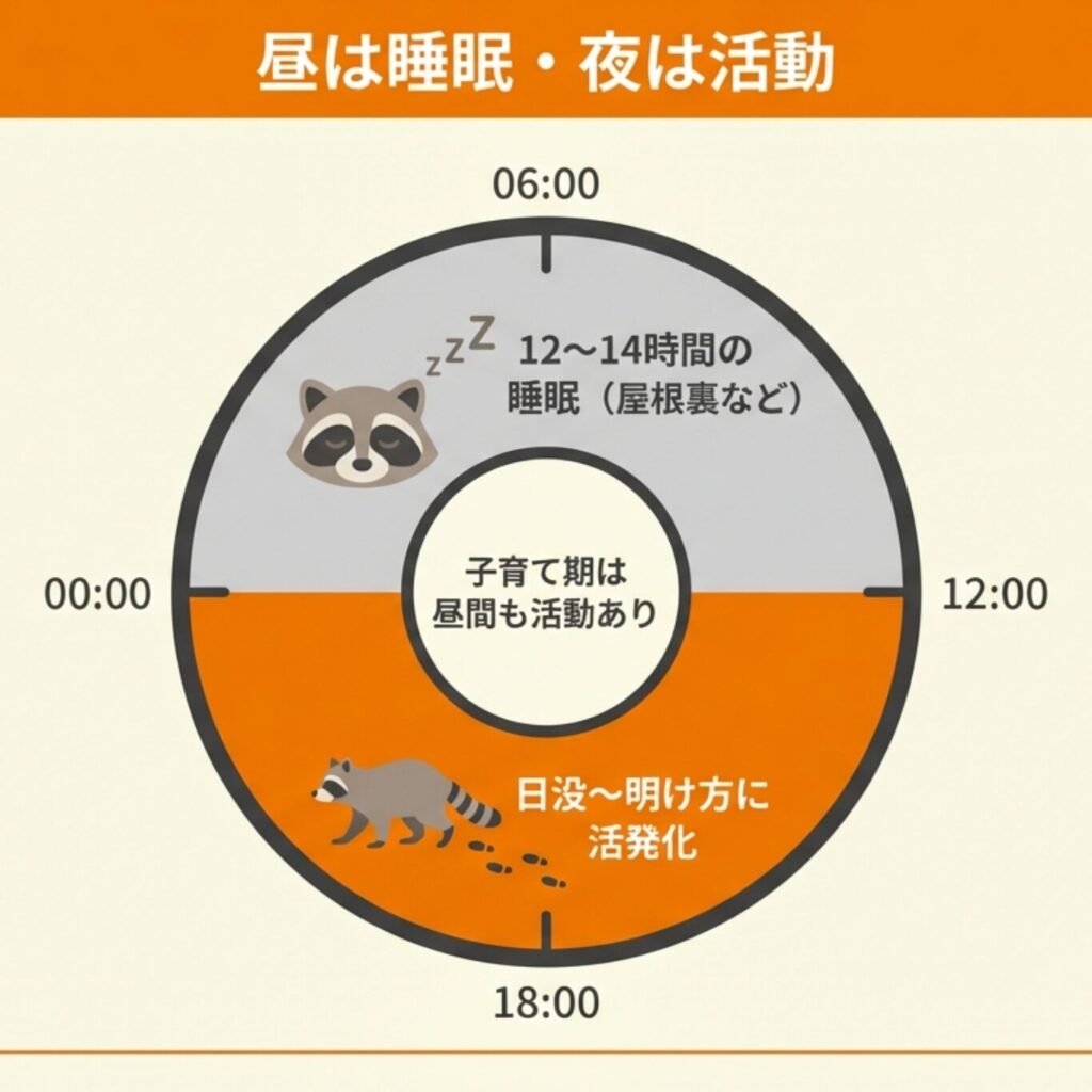 アライグマがいつ、どこで活動するのかを知っておくと、被害が起きやすいタイミングを予測できます。