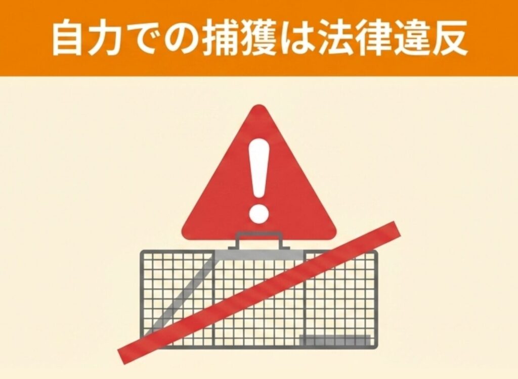 法律を知らずに無許可で捕獲すると、刑事罰の対象になる可能性があります。