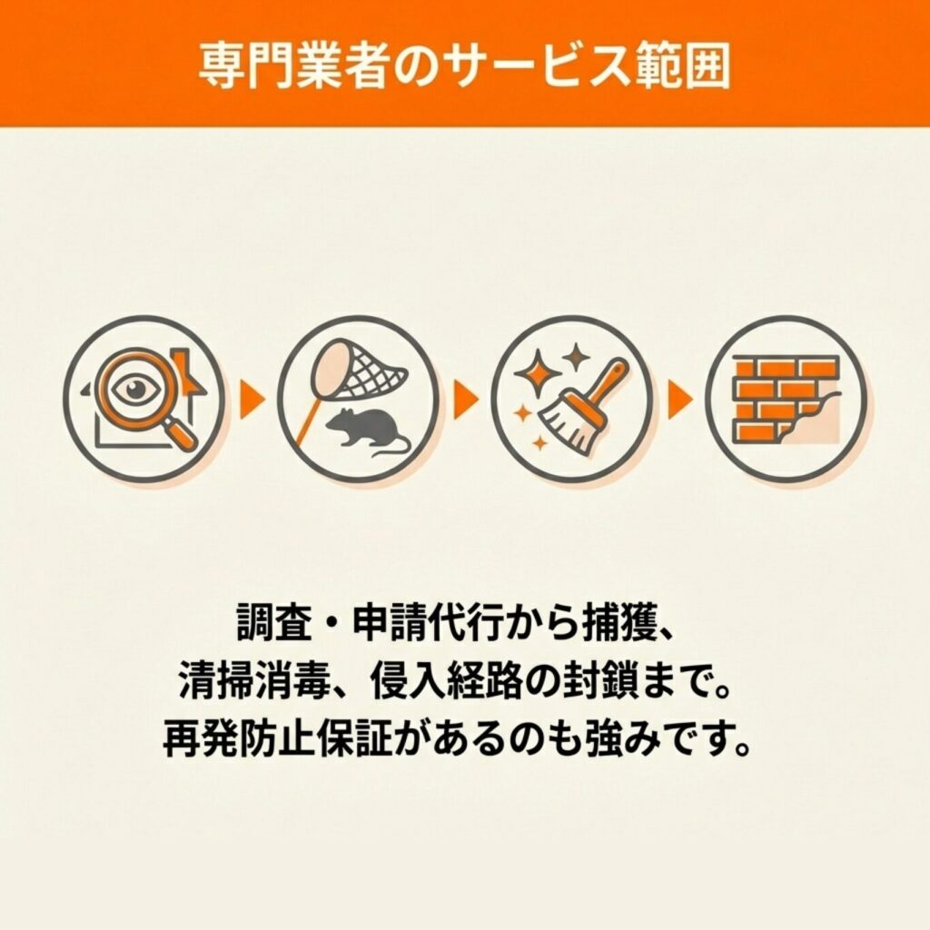 専門の害獣駆除業者に直接相談するという選択肢もあります。
