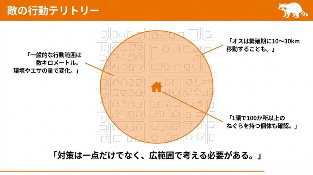アライグマの行動範囲を知ることは、被害を防ぐための第一歩となります。