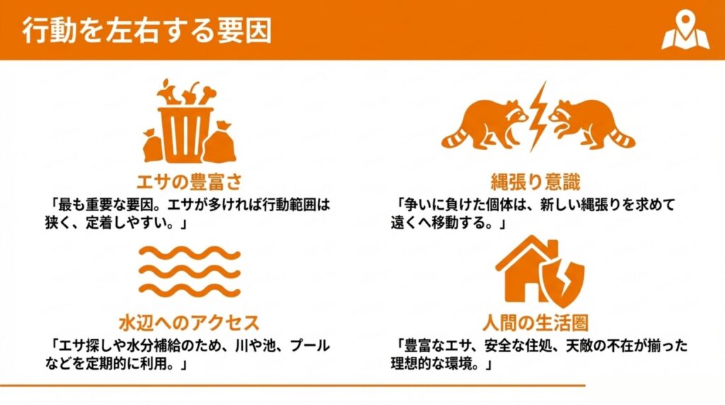 アライグマの行動範囲はさまざまな環境要因によって左右されます。