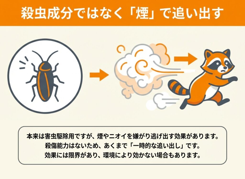 つまり、バルサンの有効成分そのものがアライグマに直接的なダメージを与えるわけではないのです。