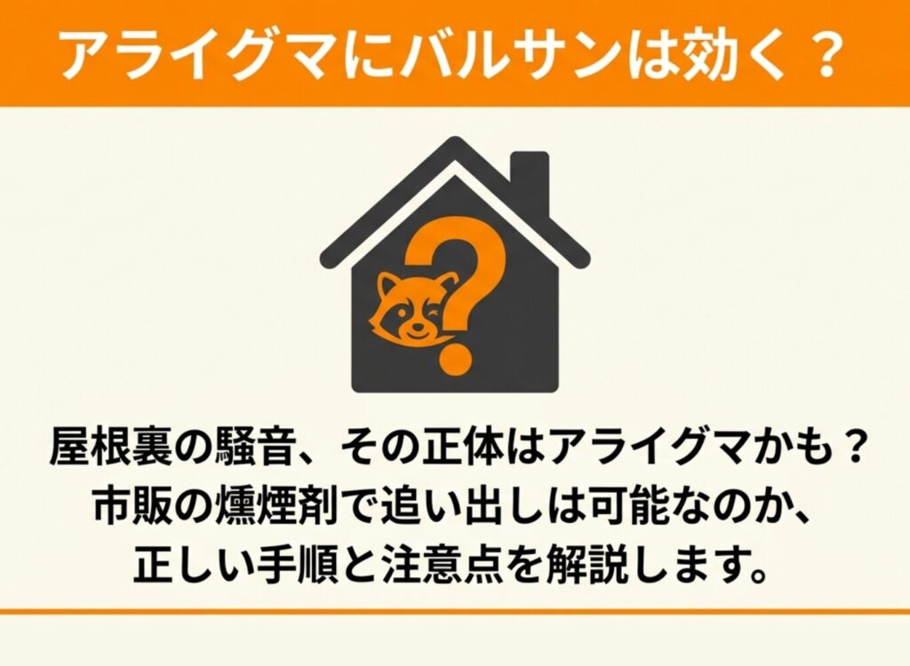 アライグマ対策としてバルサンの使用を検討している方は多いものの、本当に効果があるのか疑問に思う方もいらっしゃるはずです。