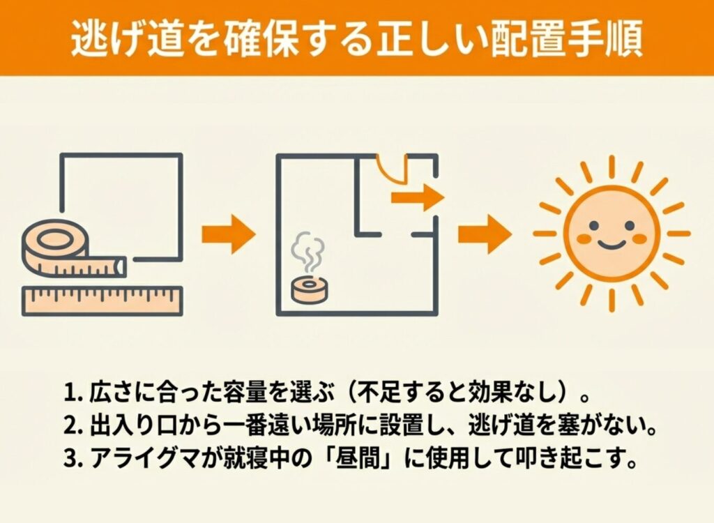 ここでは、アライグマ対策としてバルサンを使用する際の具体的な手順とポイントを解説します。