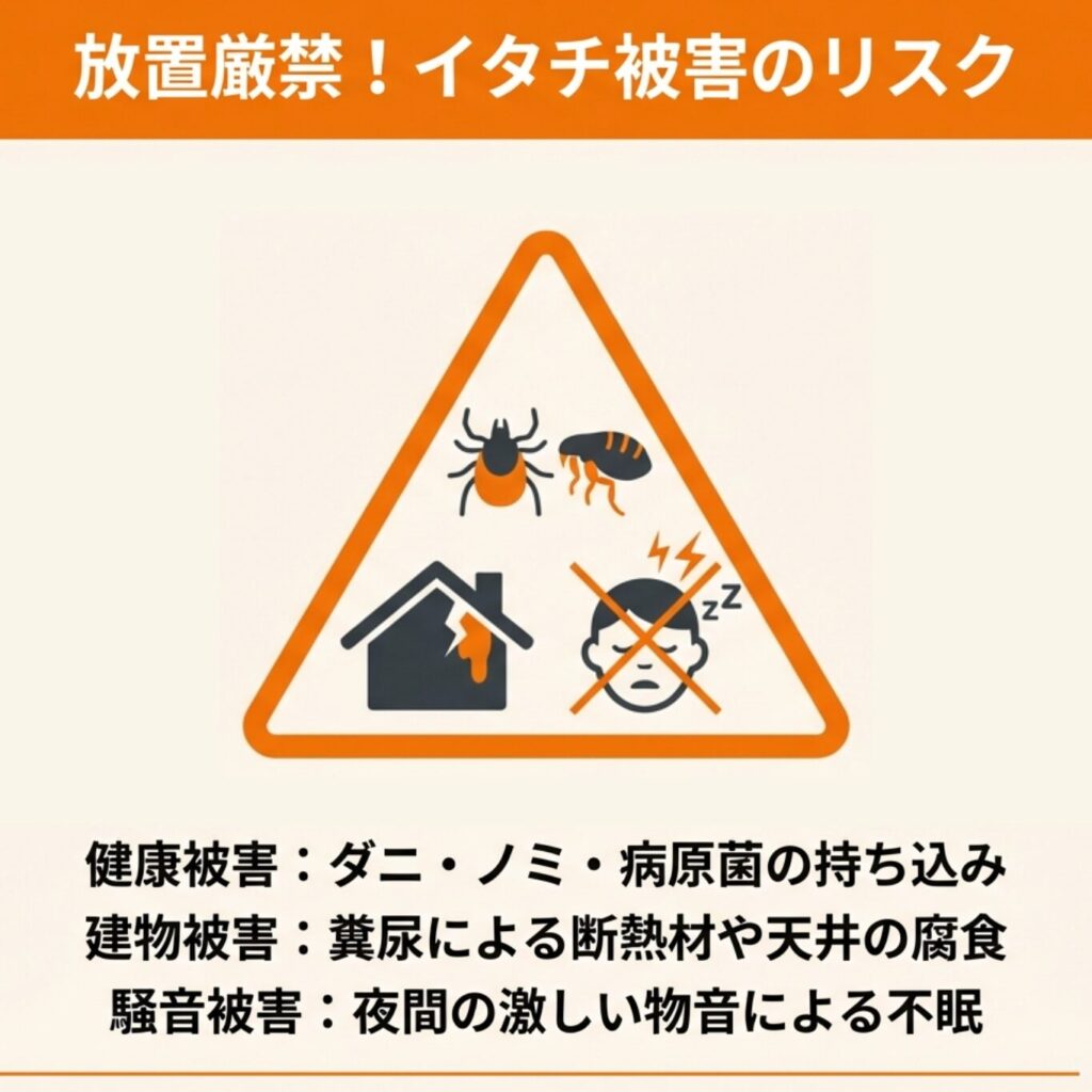 ここでは、イタチがもたらす具体的な被害について解説します。