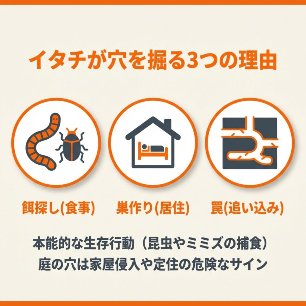 イタチが地面に穴を掘るのには、生存本能に根ざした明確な理由があります。