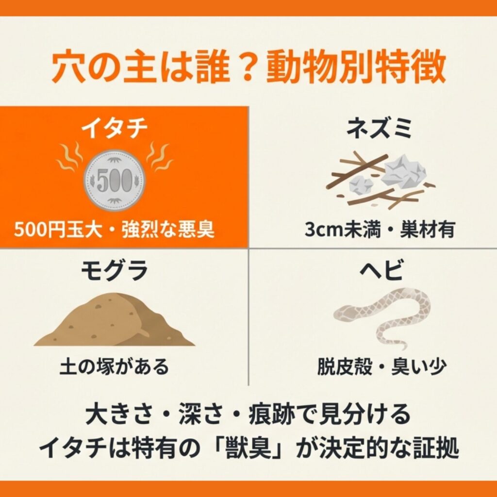 イタチ以外の動物が掘った穴との違い
