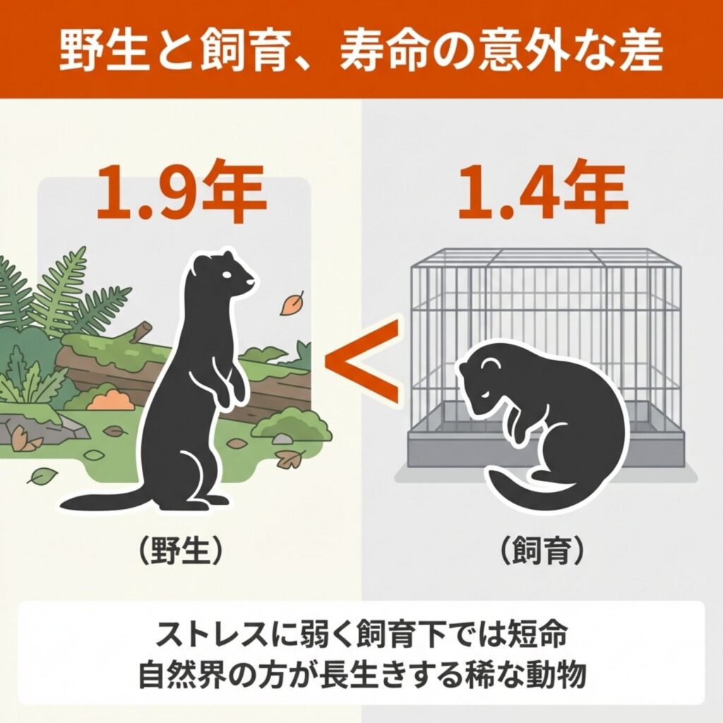 普通は飼育環境のほうが長生きしそうですが、イタチの場合は違います。
