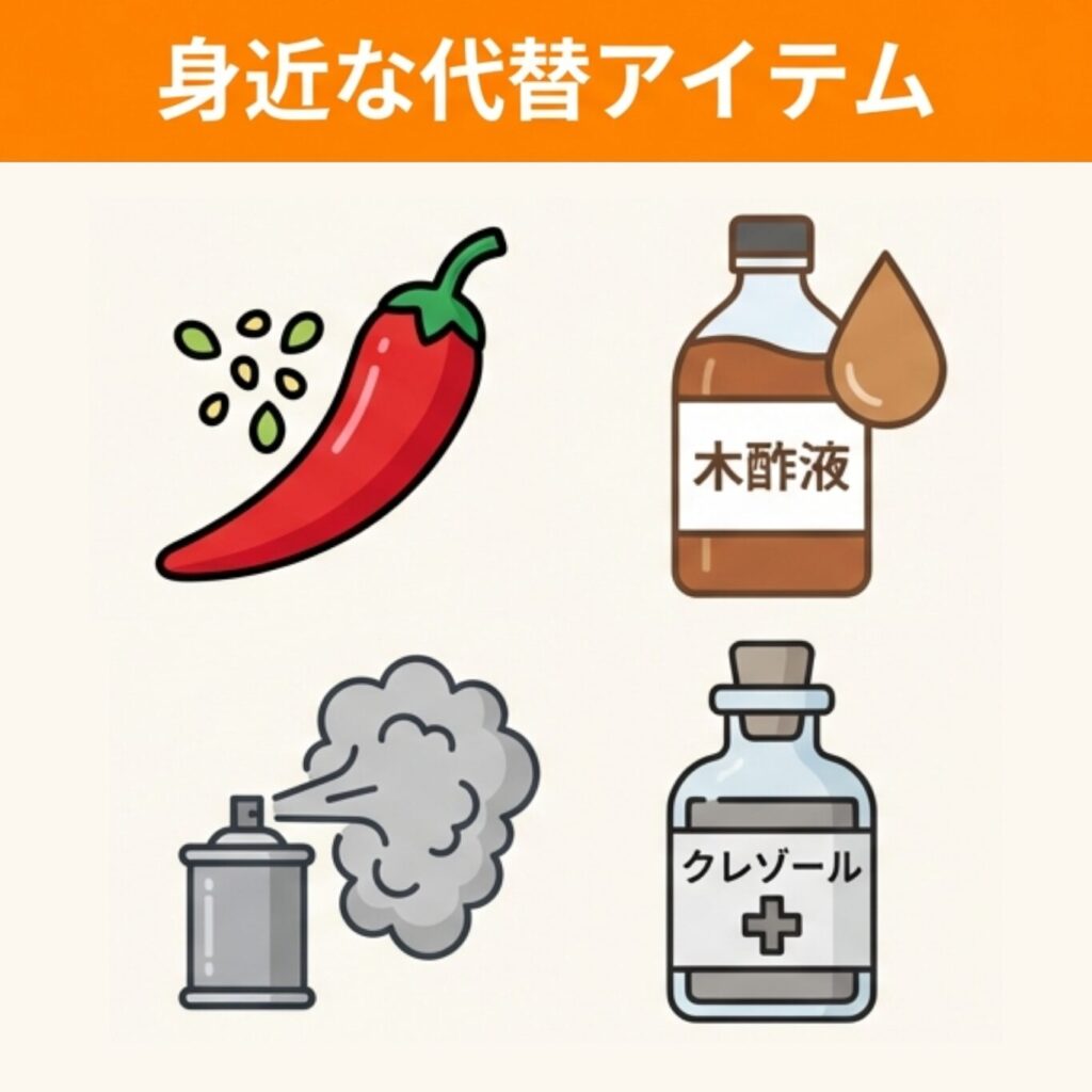 イタチは刺激臭全般を嫌う傾向があるため、身近な日用品でも代用が可能です。