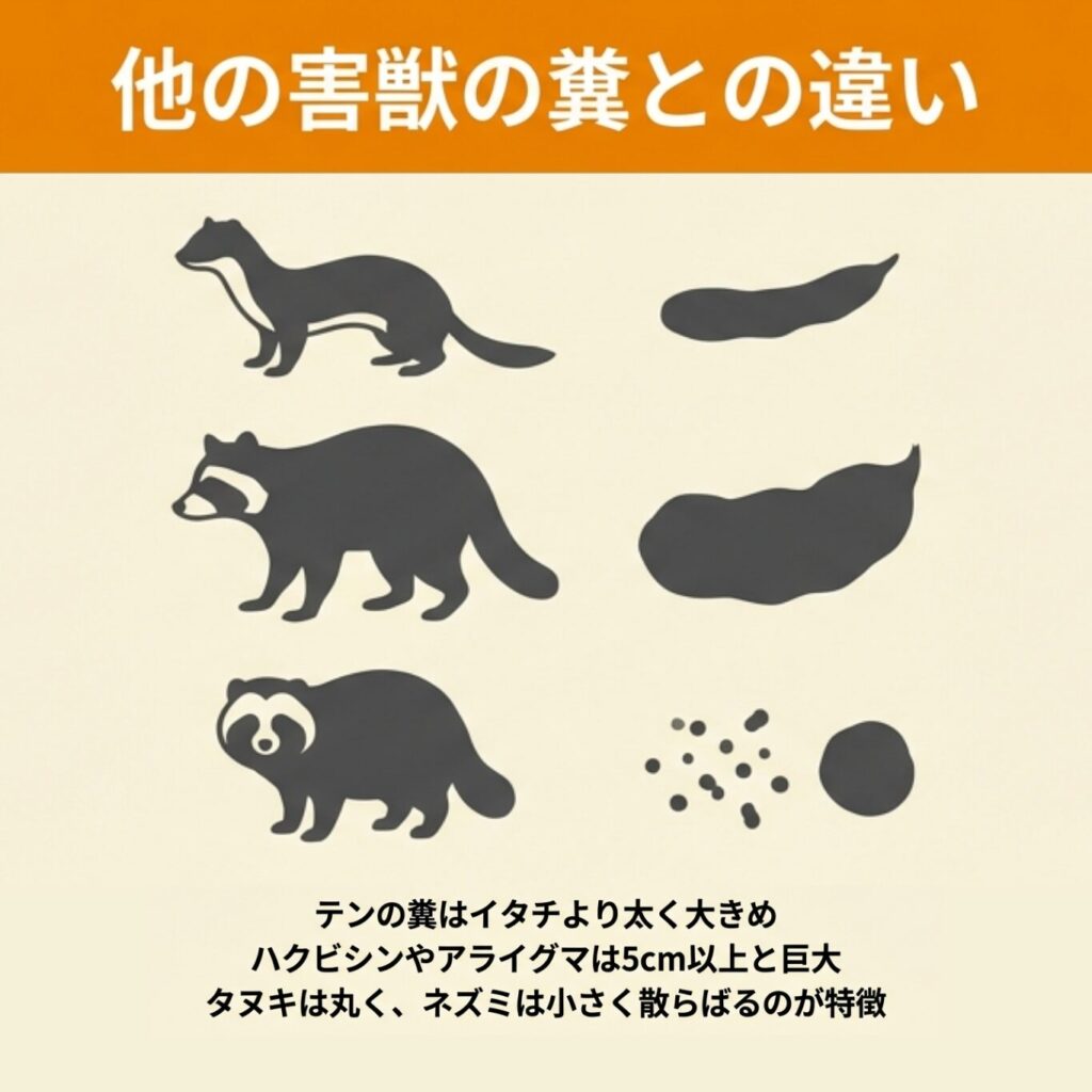 ここでは、イタチの糞と混同しやすい動物との違いを具体的に解説していきます。