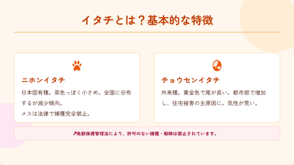 特にニホンイタチのメスは完全に捕獲が禁止されており、オスとメスの見分けが難しい現場では特に注意が必要です。