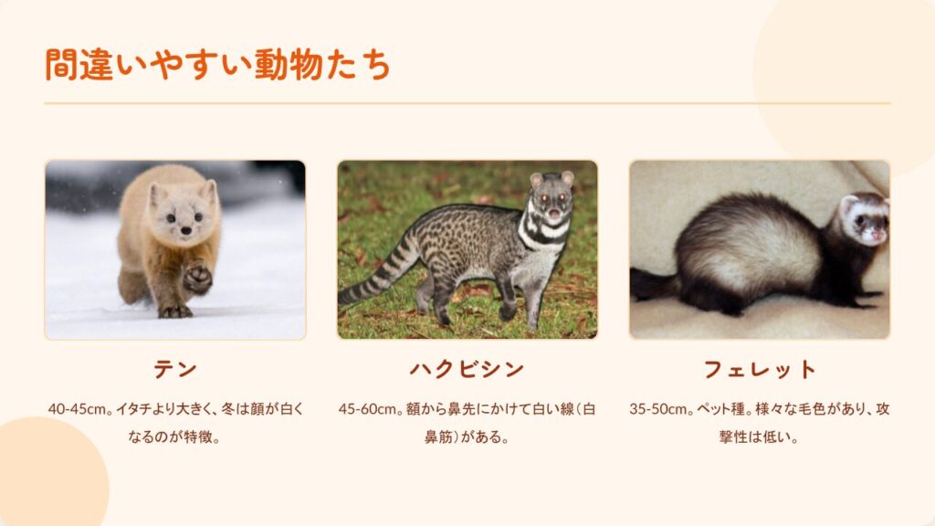 イタチの基本的な体格を知ることで、害獣対策をスムーズに進められるようになります。