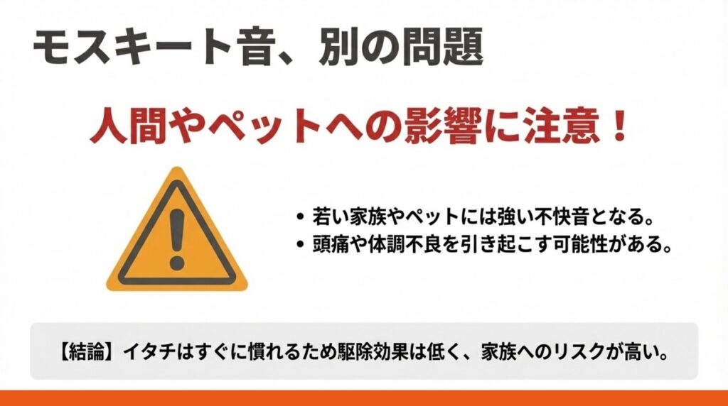 モスキート音は若い世代の人間にも聞こえるため、家族への影響に注意が必要です。