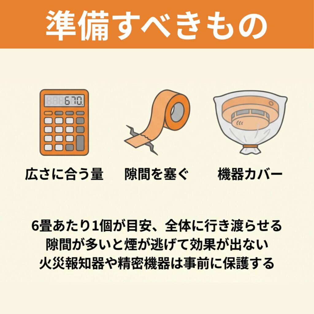 使用する場合は、子育て期間を避け、気密性の確保や火災報知器へのカバーなど、正しい手順を踏むことが重要といえます。